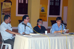 ![]() El turno de Robinson Quintero Ossa en la conferencia al alimón con Joaquín Mattos, en el evento inaugural del III Festival Internacional de Poesía PoeMaRio, en Barranquilla, el 22 de septiembre de 2010. |